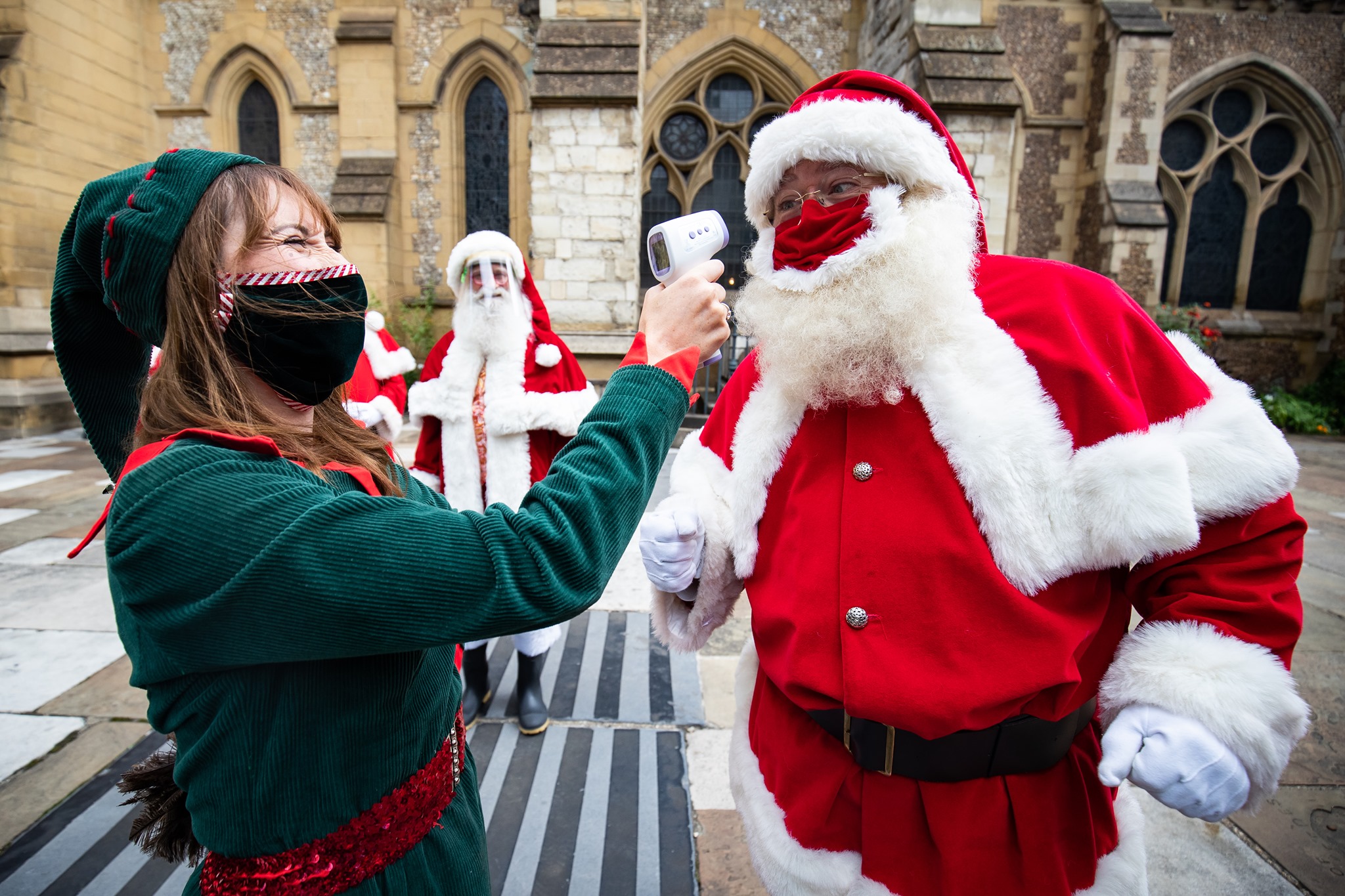 These are members of the socially distant santa school. They travelled to Southwark Cathedral to learn about creating Covid-safe Christmas grottos.