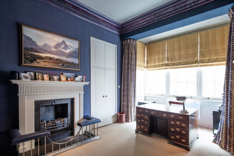 There’s a separate study for home-working, featuring a striking blue colour scheme.
