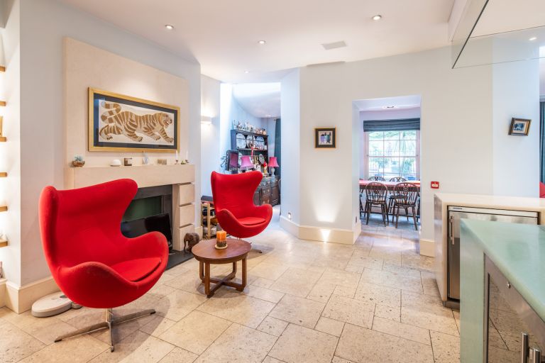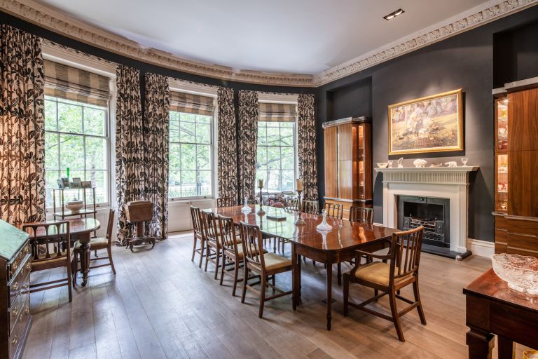 Next door to it is a reception room overlooking the quiet street, while the traditional drawing room is on the ground floor, with three large sash windows overlooking St James’s Park and a historic green marble fireplace.