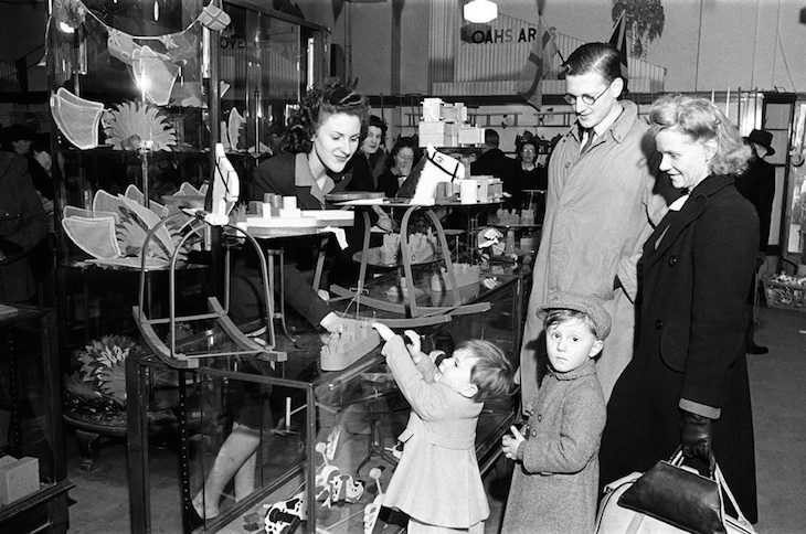 The Regent Street store was bombed five times during the war, yet it remained open for business. Staff served at the front of the store, wearing tin hats and running inside to collect toys before completing the transaction at the front.