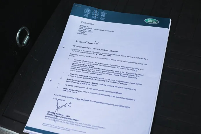A letter from Land Rover to the Duke of Edinburgh, detailing its provenance, accompanies the sale